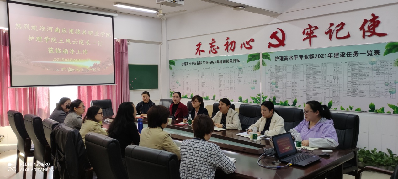 岳阳职业技术学院护理学院院长李习平组织该学院5位副院长李国平、姜娜、陈茵、沈颖惠等以及1位康复教研室主任王丽云和1位专任教师邓媛等相关岗位负责人热情接待,并就双高建设任务进行了深入的交流讨论。双方首先在护理学院二楼党员活动中心召开了交流座谈会。