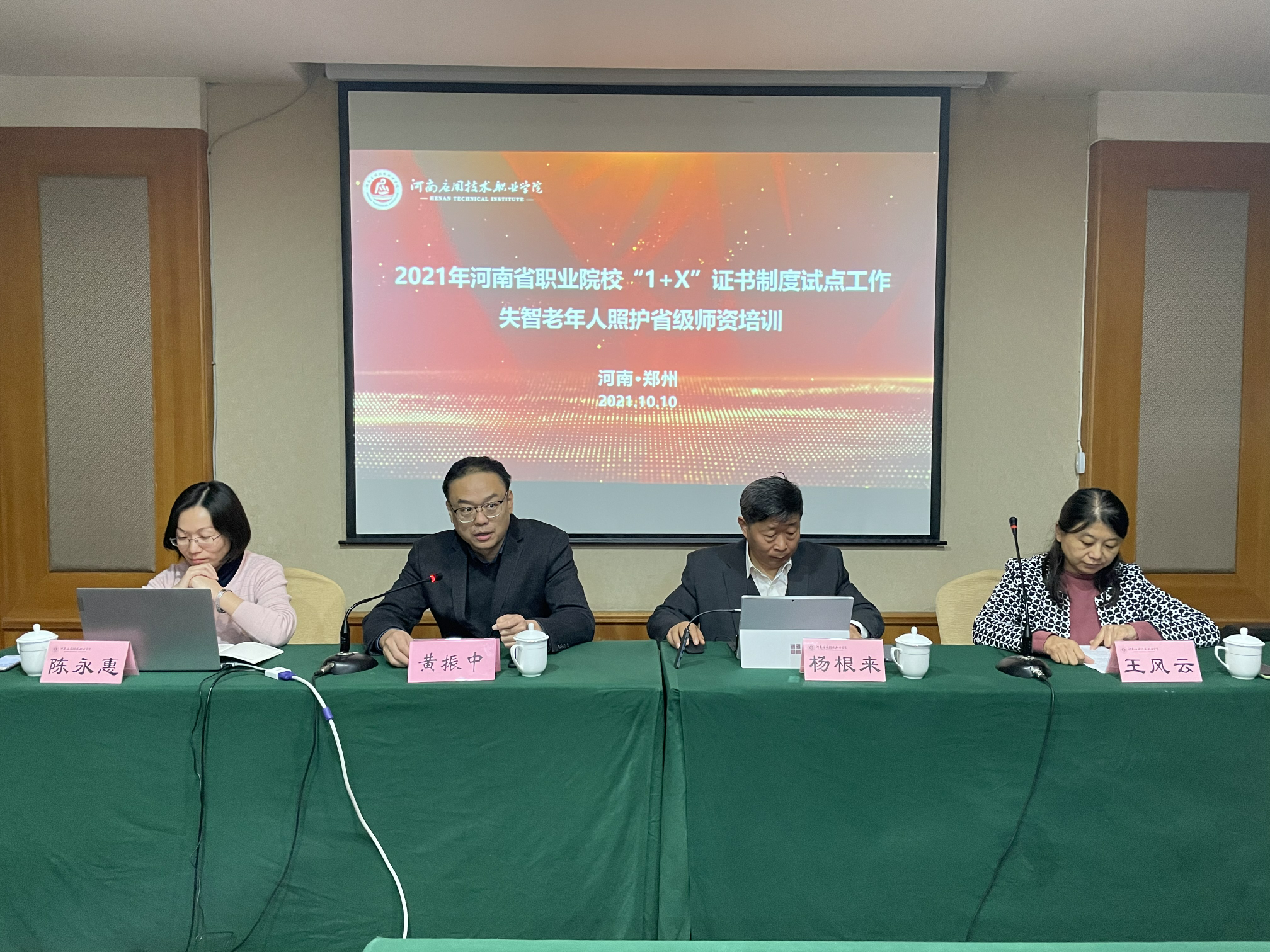 为贯彻落实《国家职业教育改革实施方案》精神,推进职业技能等级证书试点工作,2021年10月10日,2021年河南省职业院校“1+X”失智老年人照护省级师资培训班开班仪式在嵩阳饭店举行,北京中民福祉科技有限公司总经理杨根来、milan米兰体育官网教务处处长黄振中、护理学院院长王风云、护理学院副院长陈永惠以及来自省内各高职院校的教师学员参加此次开班仪式。仪式由陈永惠主持。