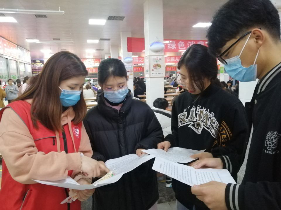 纸张为树木所制,浪费纸张等于浪费林木资源。志愿者们在办公室倡导无纸化办公,减少纸张消耗、双面用纸。使用一次性筷子是对森林资源的极大浪费,影响环境卫生并且易造成第二次污染。志愿者们在校餐厅向学生发放倡议书,杜绝使用一次性筷子,珍惜绿林资源。