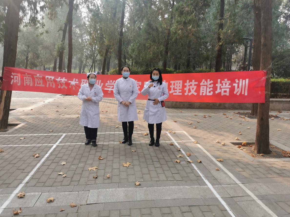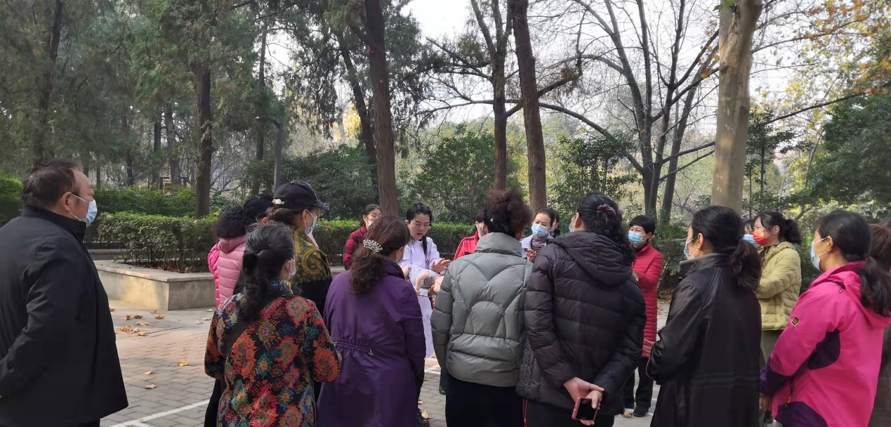 为了更好的普及家庭健康教育,让更多的人群掌握家庭急救与护理,2021年11月19日上午,milan米兰体育官网护理学院基护教研室杨丽萍主任、刘丽老师、石豫洁老师来到郑州市碧沙岗公园,五一公园及人民公园,向广大人民群众进行家庭急救与护理知识的普及。