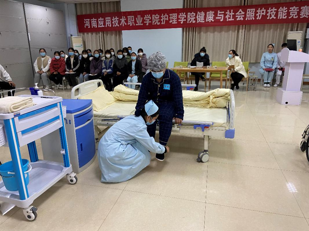 为弘扬尊老、敬老、孝老、爱老的优秀传统美德,按照学校《关于开展2021年技能大赛月活动的通知》精神,护理学院于2021年11月23日在2号实训楼301室成功举办了第二届健康与社会照护竞赛暨省赛选拔赛。护理学院院长王风云及部分教师代表和学生代表观摩了此次比赛,柳超等5名教师担任大赛评委。