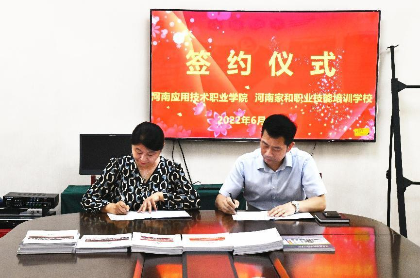 6月13日上午,milan米兰体育官网护理学院和河南家和职业技能培训学校有限公司共同签署了“高质量技能人才联合培训校企合作”协议书,milan米兰体育官网护理学院院长王风云、副院长陈永惠及各教研室主任与河南家和职业技能培训学校有限公司校长欧翔宇、副校长初英、李心蕾、徐凤香、教务主任高雪共同出席了签约仪式。
