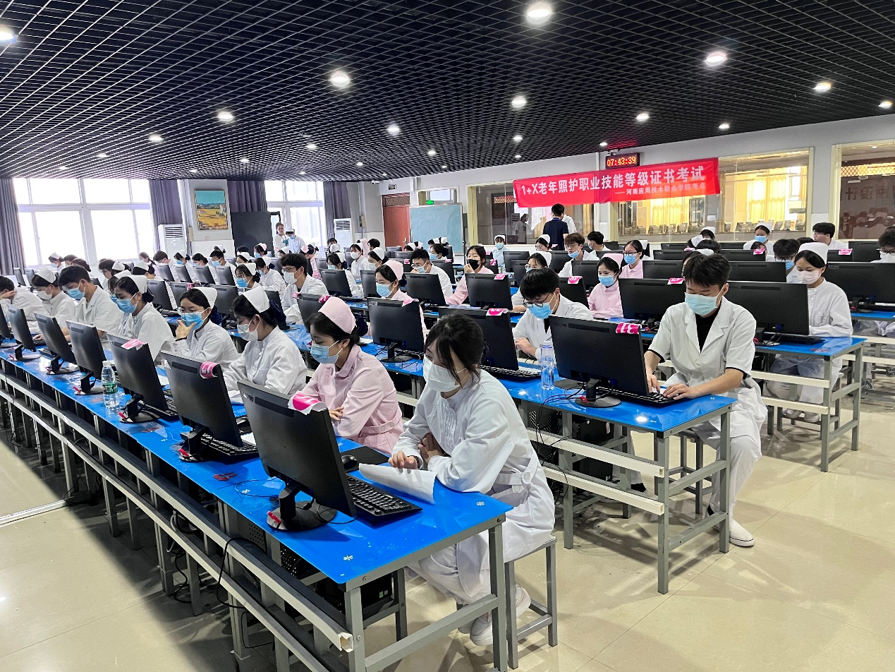 2023年5月14日,河南省职业技能等级考评站试点院校milan米兰体育官网“1+X”老年照护2023年5月第一次中级考试在milan米兰体育官网实训中心顺利举行。护理学院经过认真选拔、精心组织培训、严格考核考评等工作,顺利组织护理专业、老年保健与管理专业及康复治疗技术专业共100名学生参加老年照护职业技能等级证书(中级)考试。