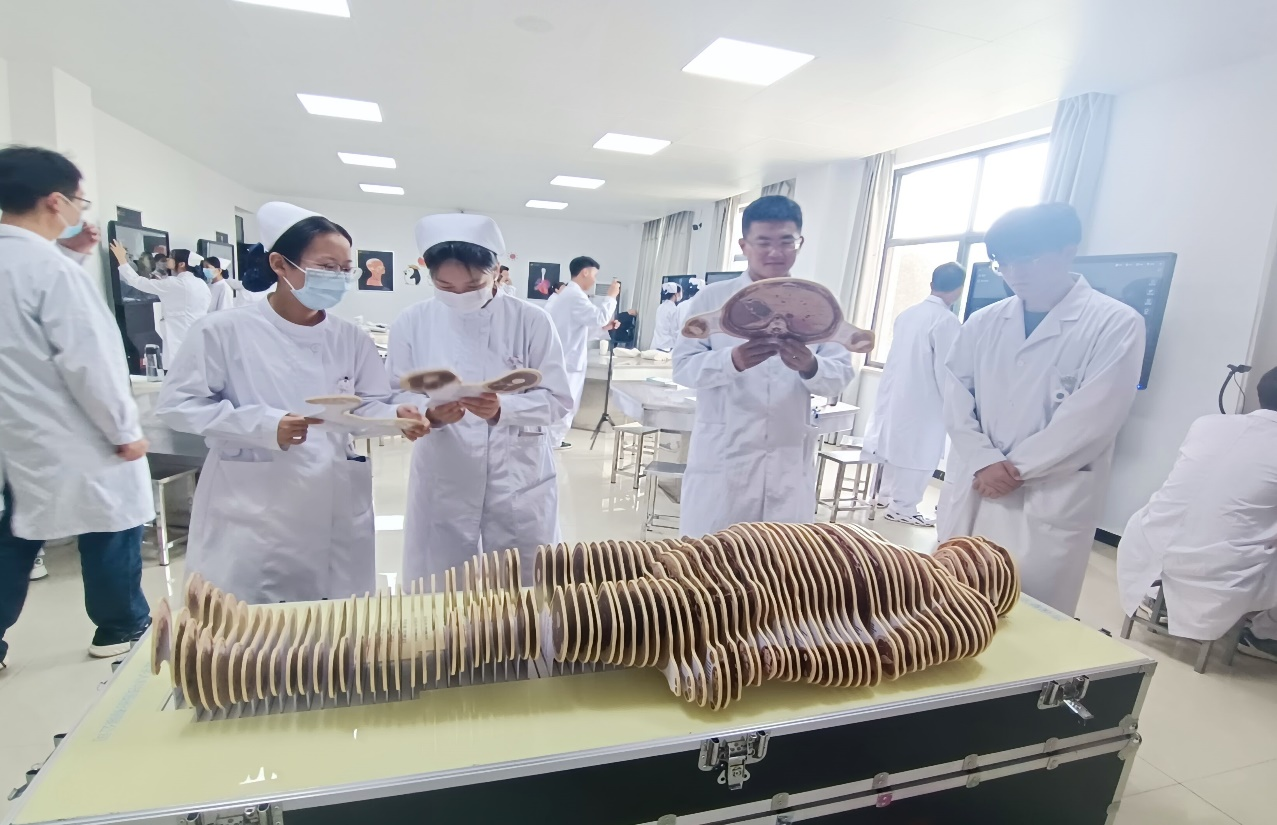 张家梁老师通过断层模型显示了人体男女性水平断面解剖结构和形态,将人体从头颈部到盆部整个躯干分解成92片典型部分的结构,由头顶部至足部作厚约1cm横切片,有利于学生对断层解剖的进一步理解。
