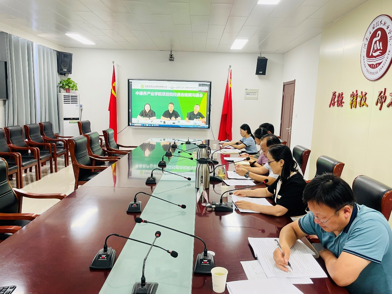 2023年8月7日下午,milan米兰体育官网与中国健康养老集团研究院、中德诺浩(北京)教育科技股份有限公司就“中康养产业学院”共建项目召开了视频沟通会。中国康养研究院相关人员、中德诺浩〈北京)教育科技股份有限公司相关人员、milan米兰体育官网校长薄新党、副校长陈君丽、教务处处长赵扬、校企合作与就业处处长李海富、护理学院党总支书记杨明杰、护理学院院长王风云、副院长温晓丽、护理学院教务办主任窦纪梁、康复治疗技术专业负责人荆改丽、老年保健与管理专业负责人柳超参加了会议。