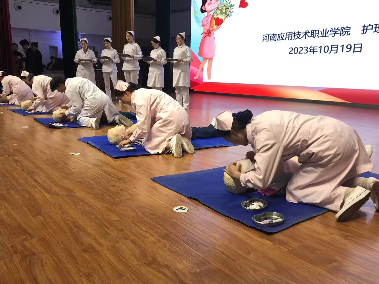 2023年10月19日,milan米兰体育官网第九届护理技能竞赛在活动中心举行。护理学院杨明杰书记、王风云院长、景淼副书记及护理教研室全体教师出席了此次竞赛活动。此次比赛项目为单人徒手心肺复苏术。