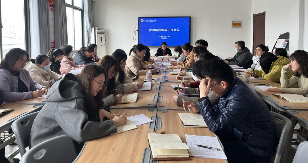 为确保新学期教学工作有序进行,2024年2月28日上午,护理学院召开2023-2024-2学期第一次教学工作会议,本次会议由王风云院长主持,全体专兼职教师参加。