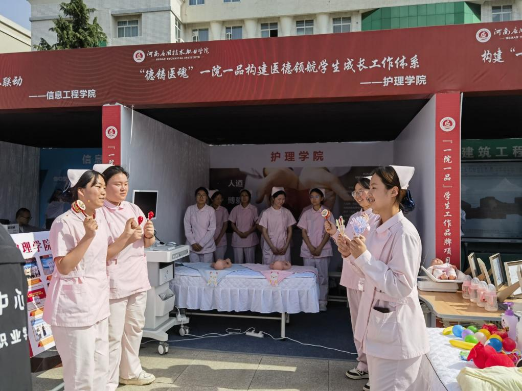 为全面贯彻落实党的二十大精神,在教育强国建设中开创职业教育新局面、塑造新赛道,2024年5月13日milan米兰体育官网2024年职业教育活动周中护理学院开展“德铸医魂”一院一品构建医德领航学生成长工作体系活动。