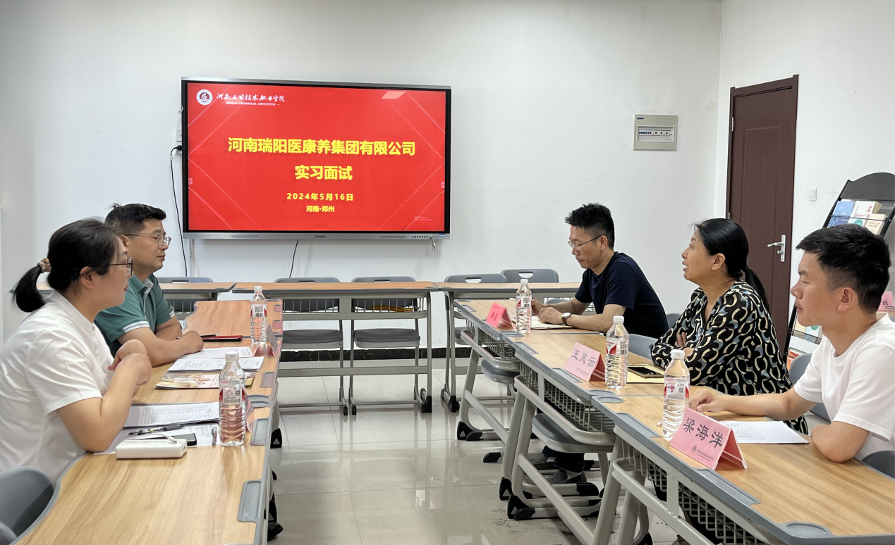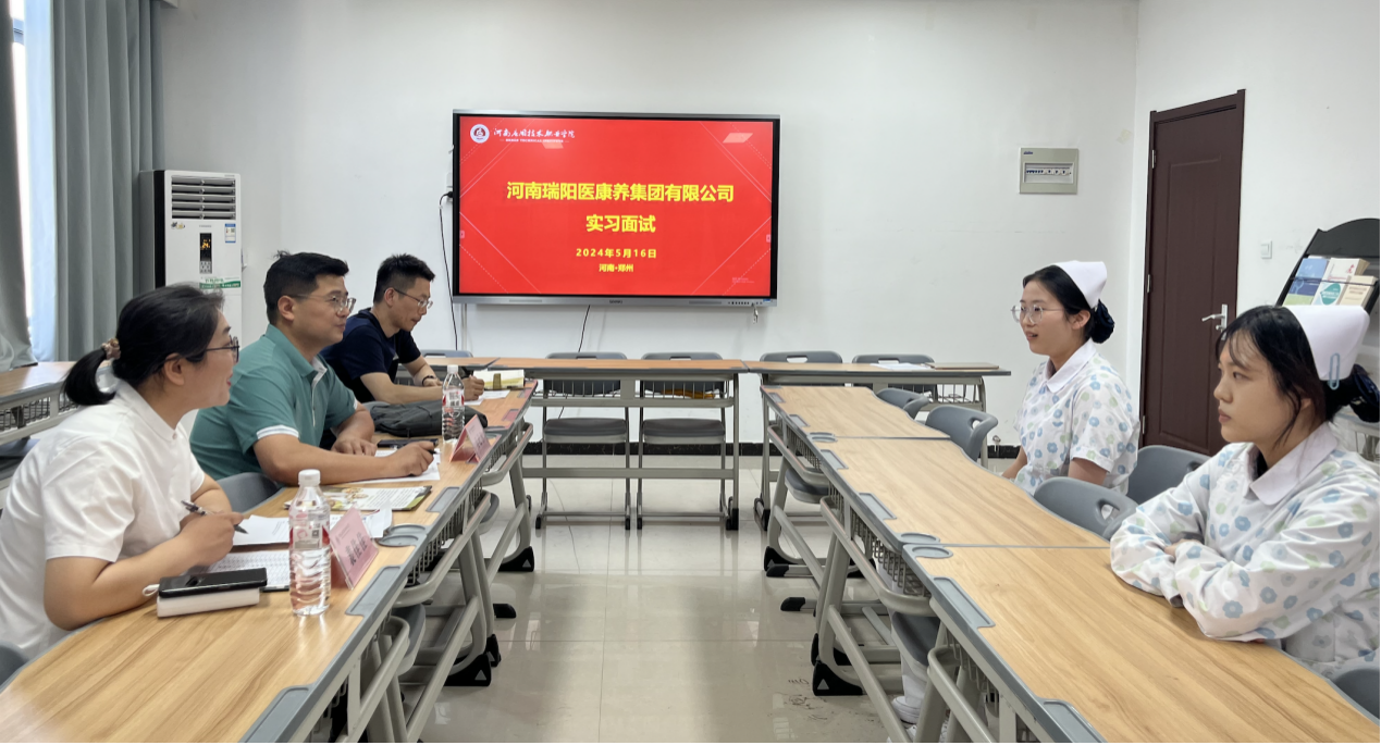 2024年5月16日下午,河南瑞阳医康养集团代表一行来到milan米兰体育官网郑州校区,对护理学院老年保健与管理专业的同学们进行了实习面试。此次面试旨在选拔优秀实习生,为他们提供实践与学习的机会,同时进一步加强校企合作,共同培养适应社会需求的医学康养人才。