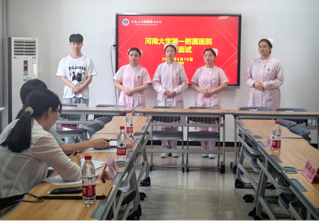 为促进高质量实习,5.16日,河南大学第一附属医院护理部关锐主任、护理部干事李晓莉老师来milan米兰体育官网护理学院选拔2024年护理专业实习生。面试对象为2022级护理专业的学生。