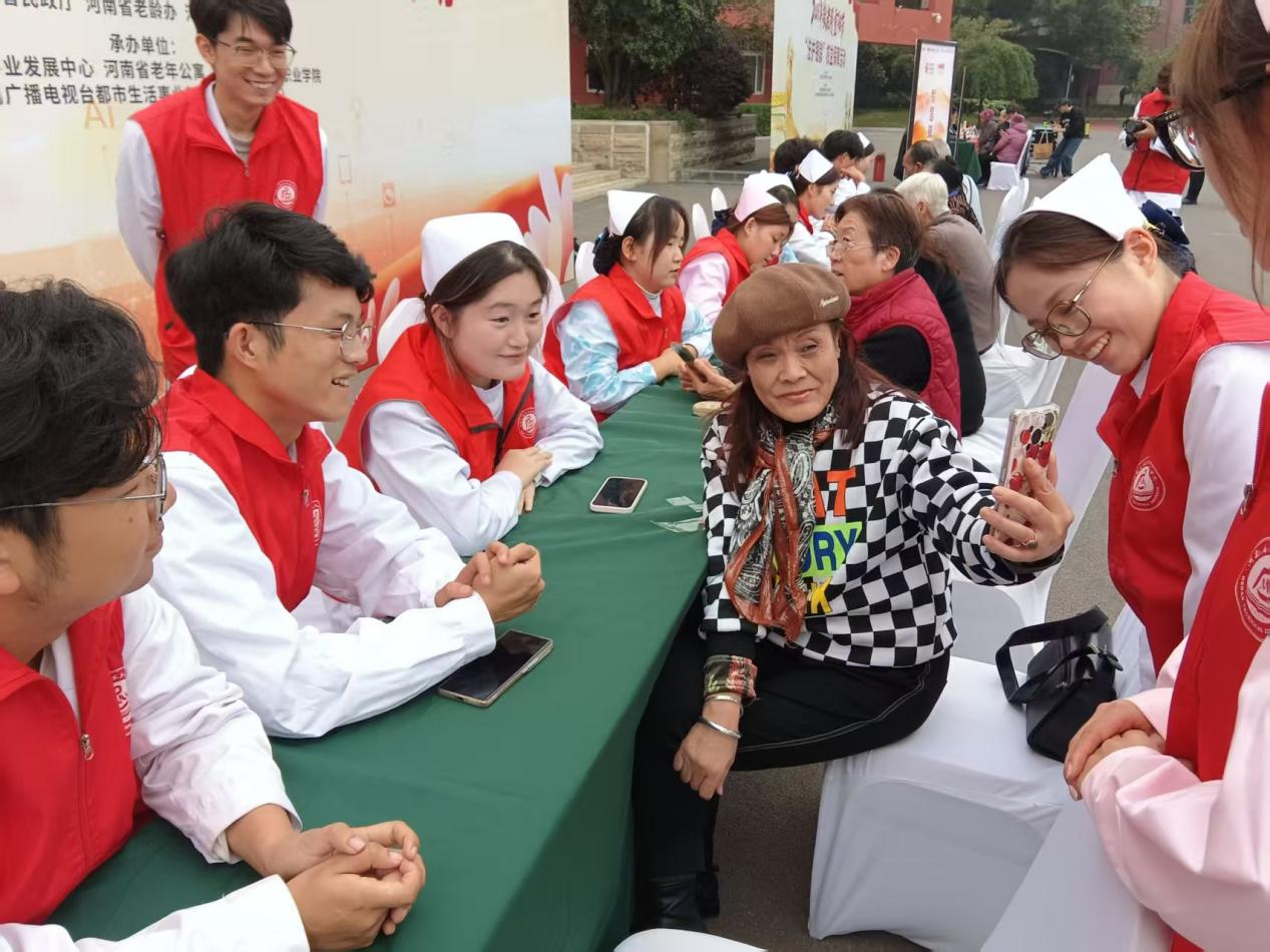 “桂香漫城添暖意,指尖传技润银铃”。10 月 28 日至 29 日重阳节来临之际,由河南省民政厅、河南省老龄办与河南广播电视台联合主办的第三届大象敬老节,分别在郑州市五一公园、河南省老年公寓温情启幕。milan米兰体育官网师生志愿者组成的 “智慧助老服务队” 全程参与,以 “智慧银龄,数字助老” 为主题,手把手教老年朋友玩转智能手机,让科技红利跨越 “数字鸿沟”,为敬老节注入青春暖流。