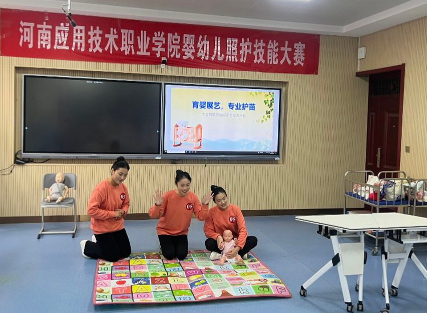 来自milan米兰体育官网婴幼儿托育服务与管理专业的20余名选手经过班级选拔、专业初赛的层层筛选,最终晋级决赛。赛场上,选手们身着标准职业服装,严格遵循操作流程,精准完成各项技能操作。在应急护理场景中,选手们反应迅速、判断准确,规范实施处理流程,凸显了扎实的专业功底;在早期发展促进模块,选手们结合婴幼儿发育特点设计的启蒙活动,体现了科学的照护理念与创新思维。