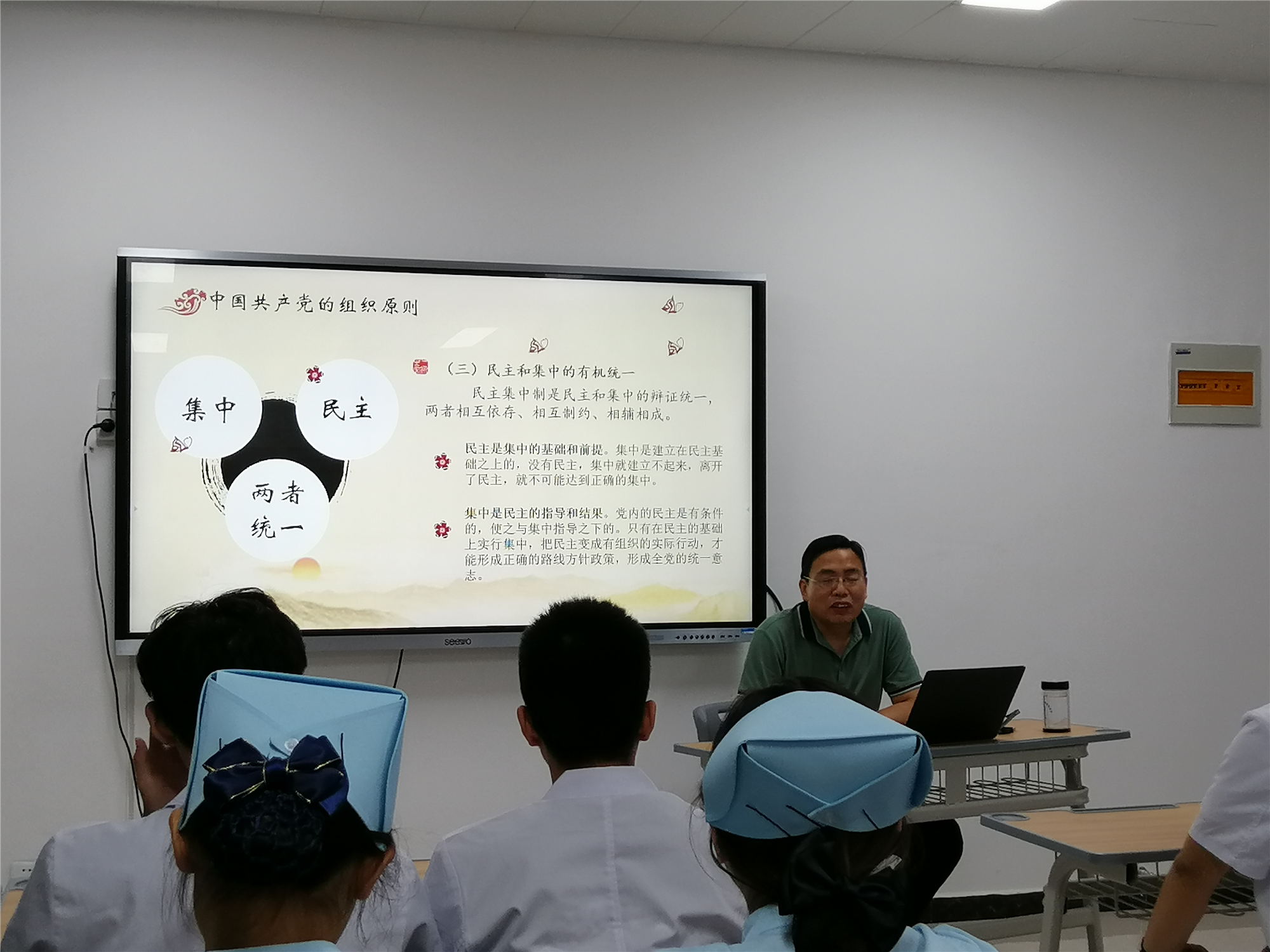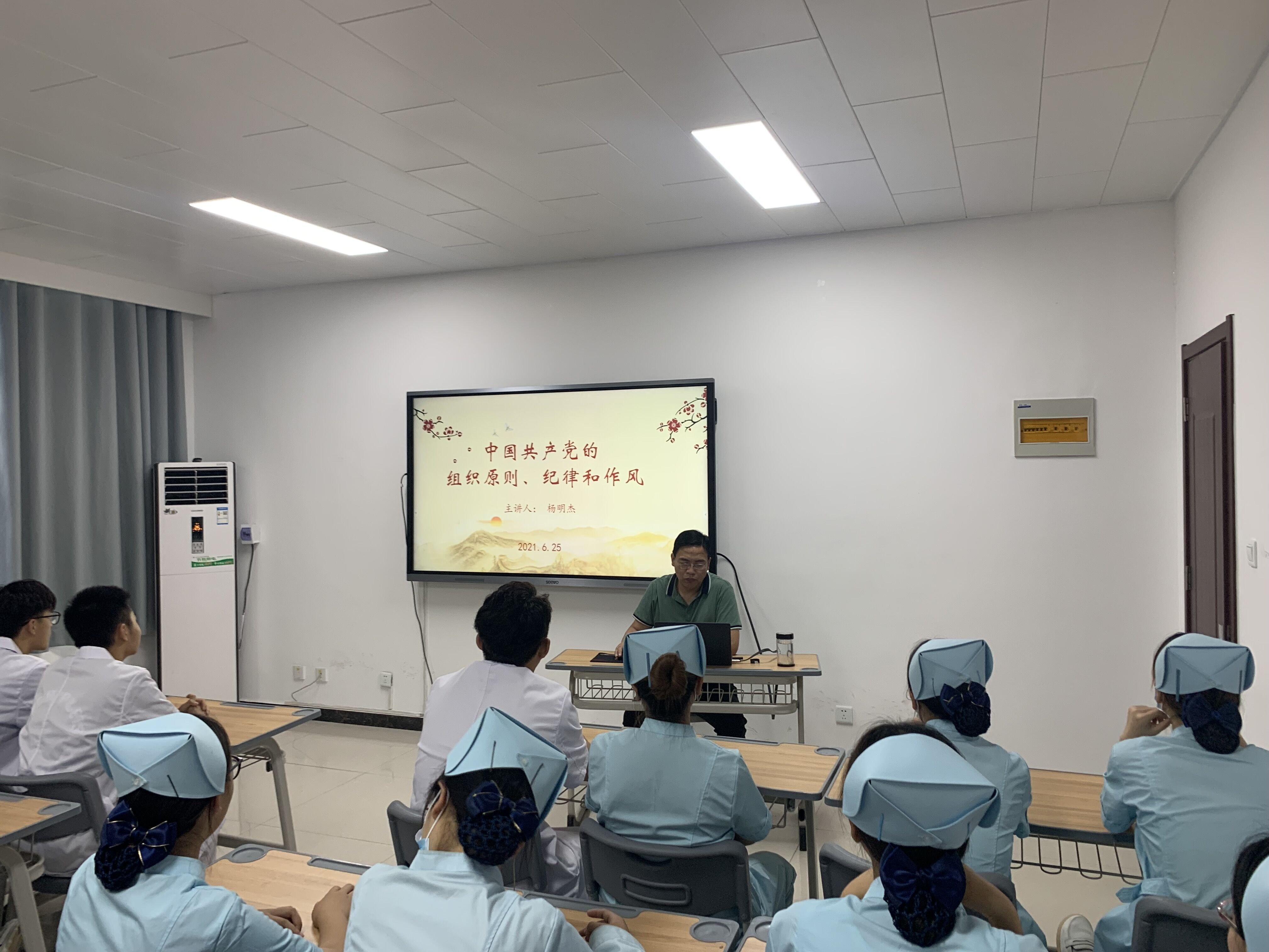 为进一步深化党史学习教育,密切干群联系,落实中共milan米兰体育官网委员会关于《milan米兰体育官网副处级干部联系学生班级实施办法》的通知要求,护理学院党总支书记杨明杰于2021年6月25日在A515为护理2016班做以《中国共产党的组织原则、纪律和作风》为主题的党课宣讲。