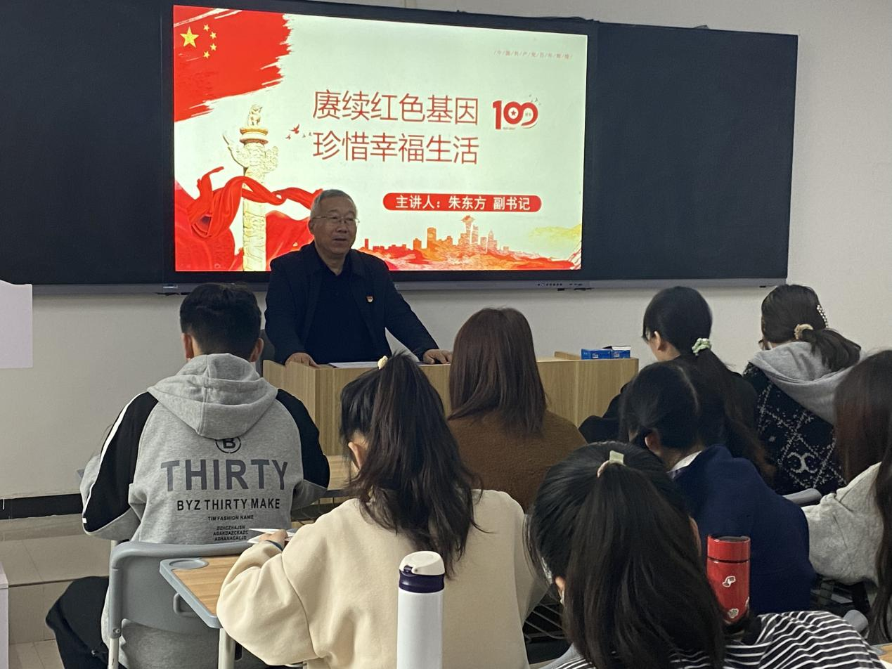 为深入学习贯彻习近平总书记在庆祝中国共产党成立100周年大会上的重要讲话精神,引导广大师生学史明理、学史增信、学史崇德、学史力行,11月2日,milan米兰体育官网党委副书记朱东方以“赓续红色基因,珍惜幸福生活”为主题,为护理学院学生上了一堂精彩的专题党课。