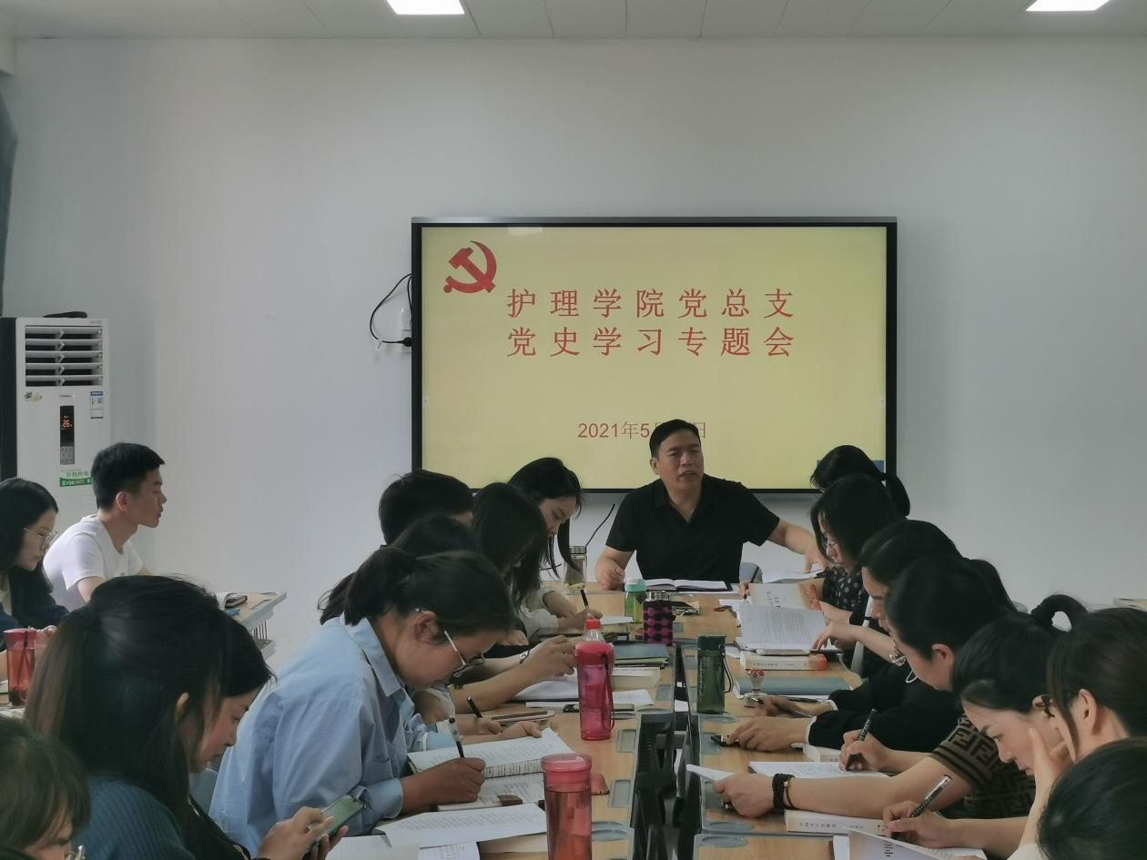 根据学校党史学习教育实施方案,2021年5月11日下午,护理学院党总支组织全体教师在A515党员活动室召开党史学习专题会,集中学习讨论《中国共产党简史》第七章《伟大历史转折和中国特色社会主义的开创》,会议由护理学院党总支书记杨明杰主持。