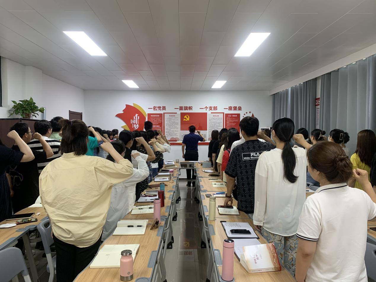 在中国共产党成立100周年到来之际,2021年6月17日下午,护理学院党总支在党员活动室召开“新党员入党宣誓、老党员重温入党誓词”主题党日活动,为预备党员举行入党宣誓仪式,增强其责任感、使命感、归属感;老党员重温入党誓词,增强党性观念,强化责任担当。护理学院全体预备党员、部分教师党员参加,活动由党总支书记杨明杰同志主持。