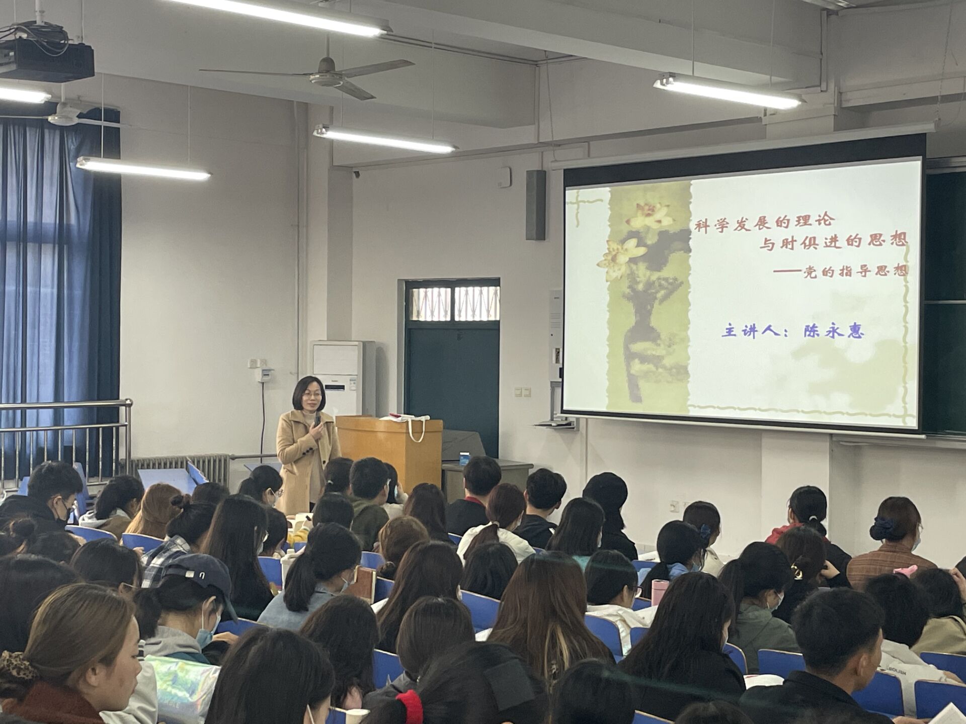 为入党积极分子认真学习党的指导思想,认识中国特色社会主义的理论体系,2021年3月11日下午,护理学院陈永惠副院长为全体入党积极分子带来了一场生动的党课。