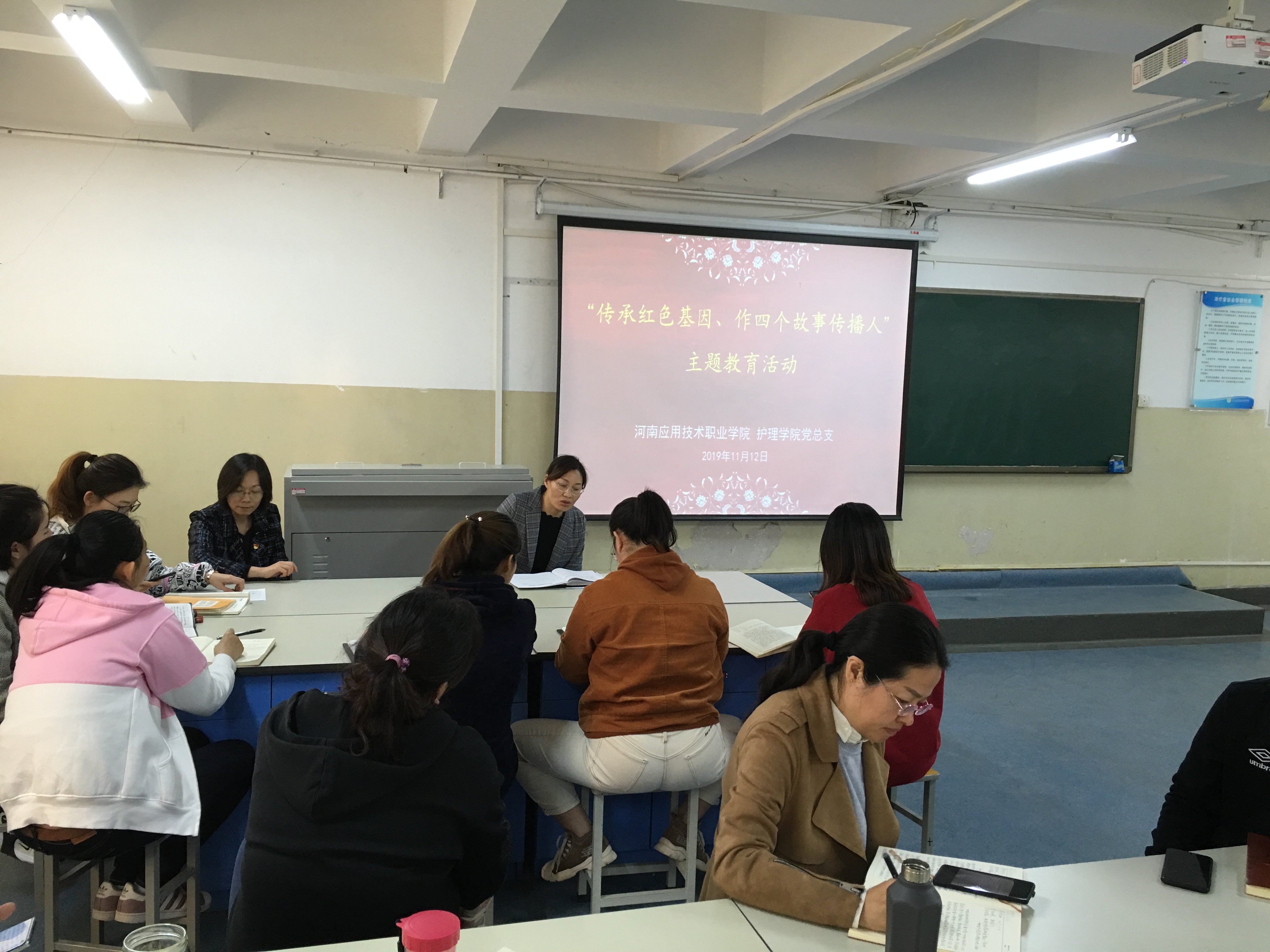 为深入贯彻落实习近平总书记视察河南重要讲话精神,推进milan米兰体育官网第二批“不忘初心、牢记使命”主题教育深入开展,11月11日中午,护理学院党总支组织全体教师在D207开展了“传承红色基因、讲好四个故事”主题教育活动。通过讲好党的故事、革命的故事、根据地的故事、英雄和烈士的故事,教育引导广大党员深入学习党史、新中国史,不断巩固升华理想信念。