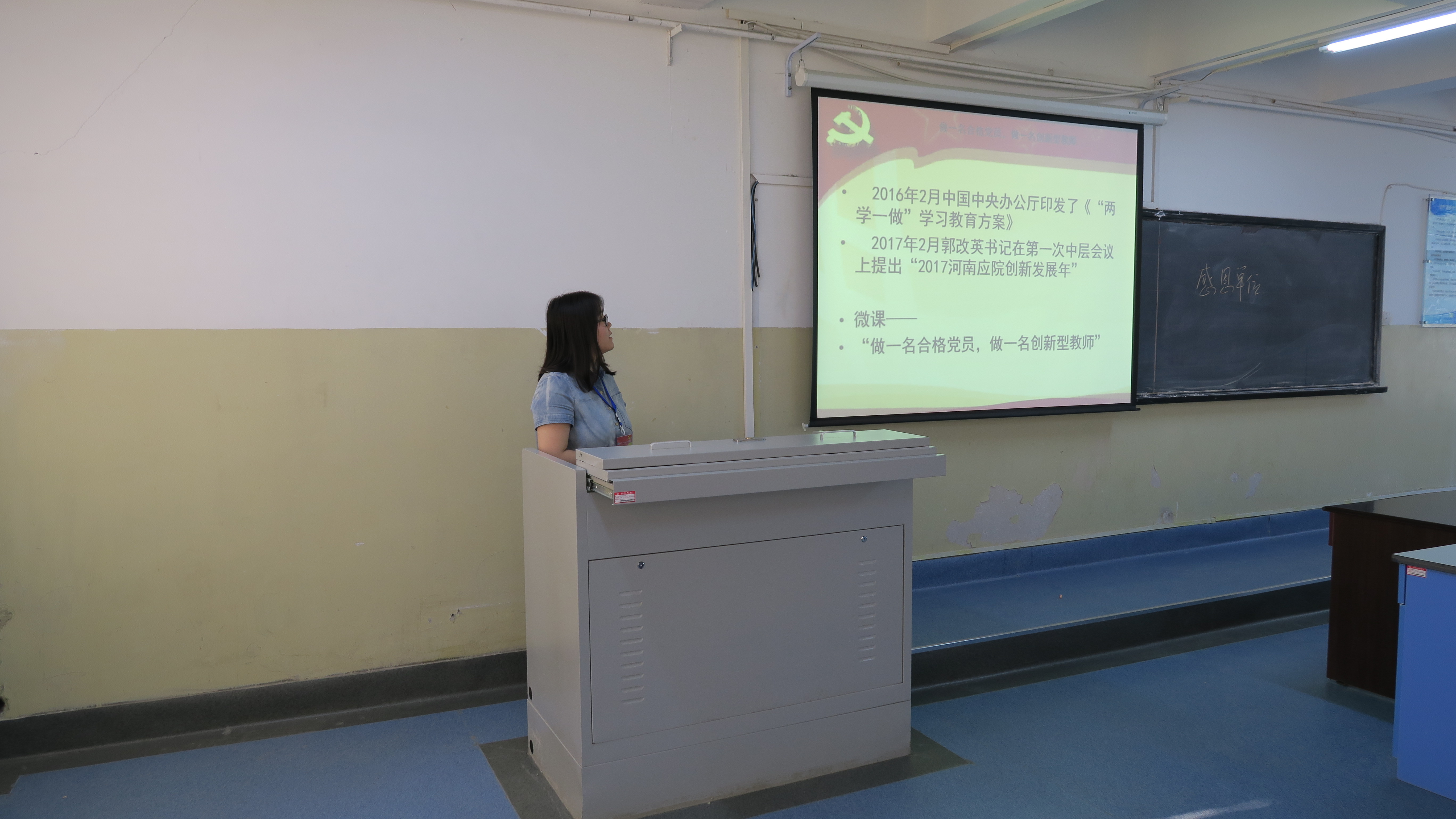 授课中以目前郑州最热的小黄车ofo为切入点,提出创新的重要性,就护理学院学生党支部和自身而言归纳了四创:一创:党支部学习方式由“一人讲”变“人人讲”;二创:“特色服务”走进校园走向社会;三创:党课由“大篇幅”变“微党课”;四创:教学中由“抽象”变“具体”。