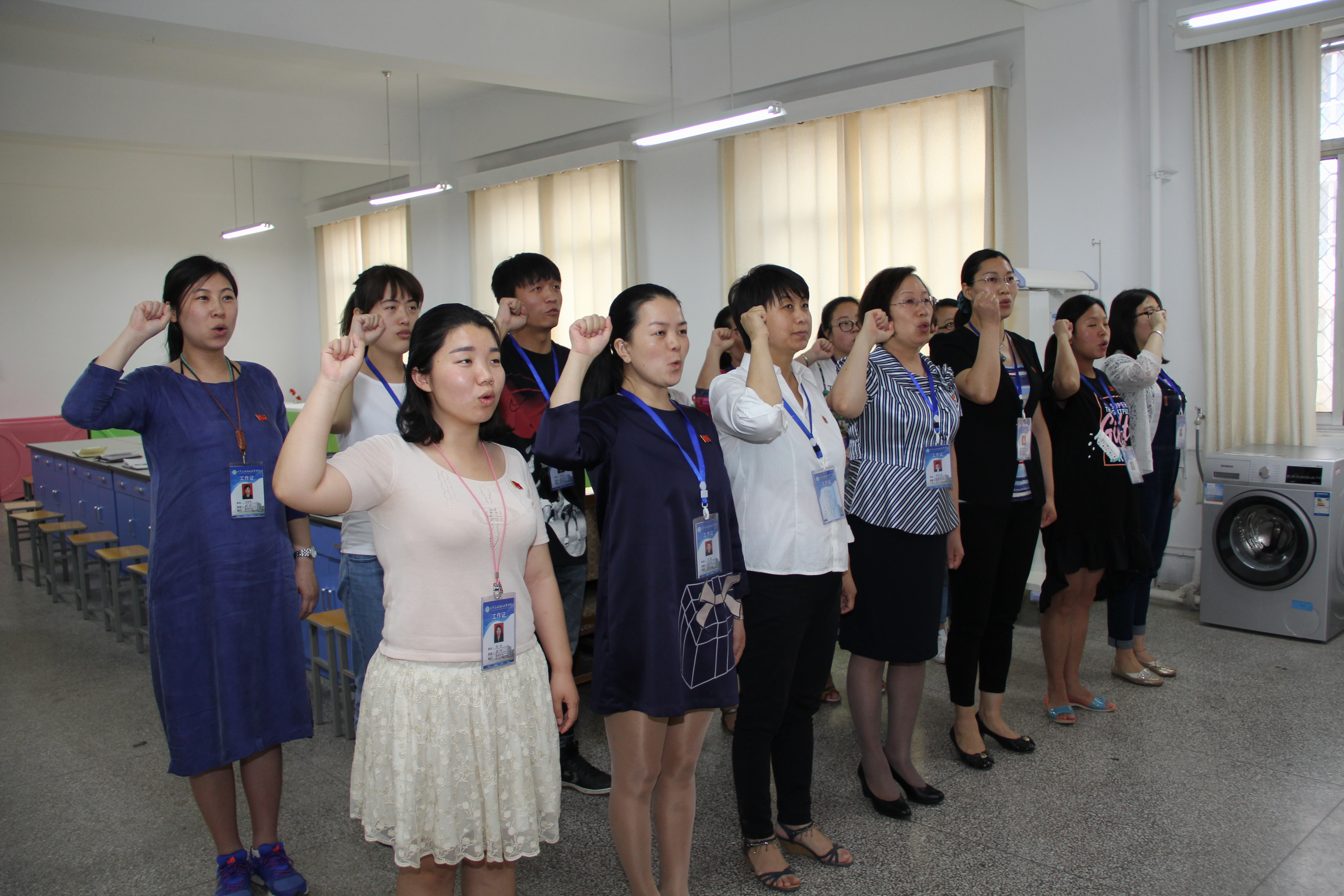 为进一步保持和扩展党的先进性,充分发挥党员先锋模范作用,更好展示党员光辉形象,2017年5月19日,我院在D307举行佩戴党员徽章仪式。党委委员郭改英书记及护理学院党总支全体党员参加仪式。学院书记徐娟主持仪式。