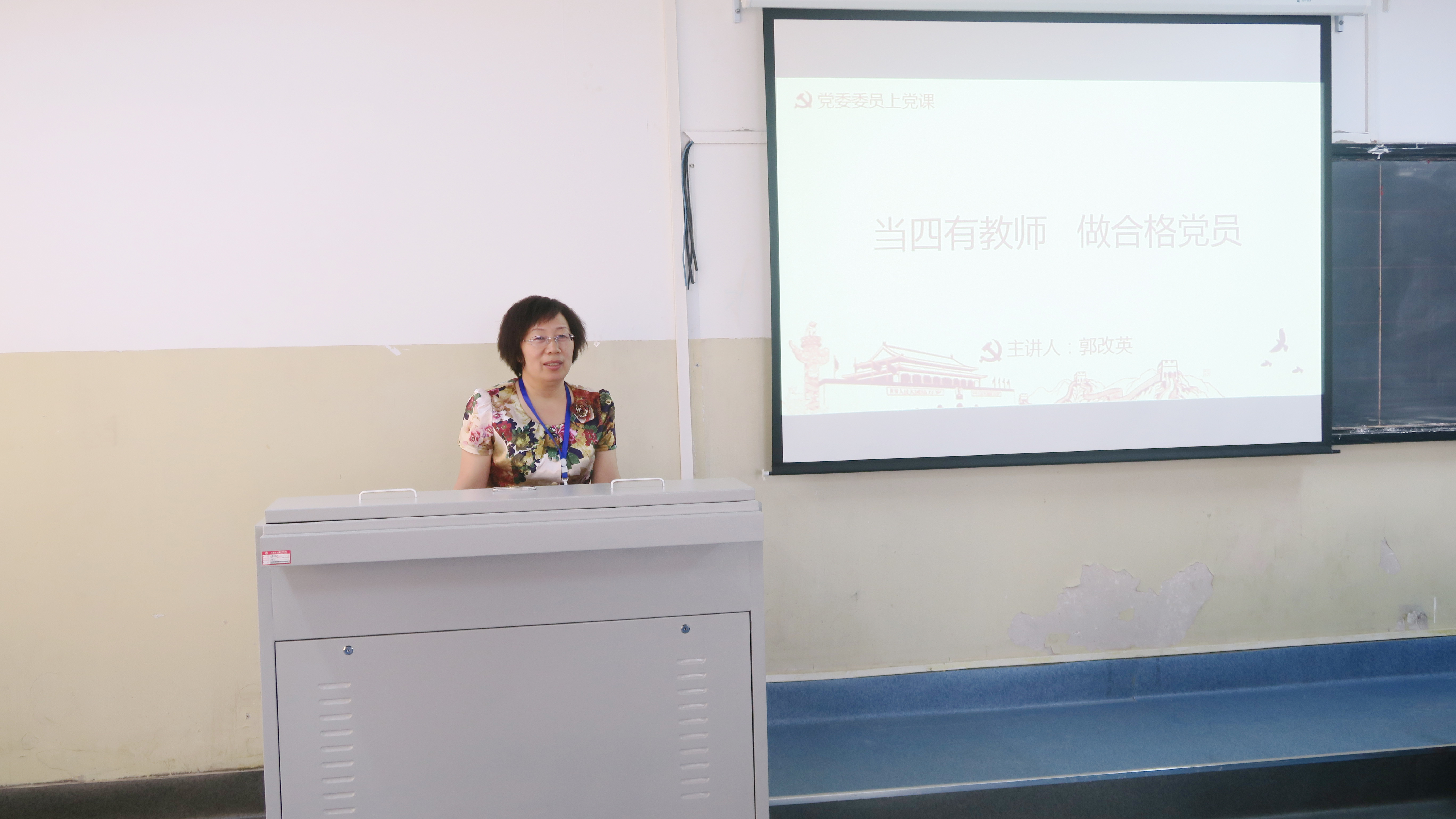 会上,郭改英以“当四有教师 做合格党员”为题进行党课宣讲。她首先强调了什么是“四有”教师,并以习近平总书记强调的“有理想信念、道德情操、扎实学识、仁爱之心”的“四有好老师”标准提出要严格落实在教师岗位工作上,进而围绕如何做优秀的党员教师提出四点意见:一是提升政治底气,坚定理想信念;二是遵循规矩纪律,树立师德师风;三是潜心学习钻研,掌握扎实学识;四是热爱学生教学,传播仁爱之心。