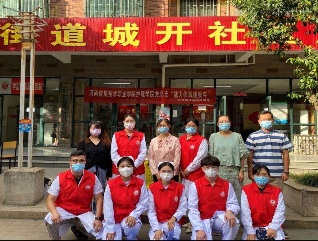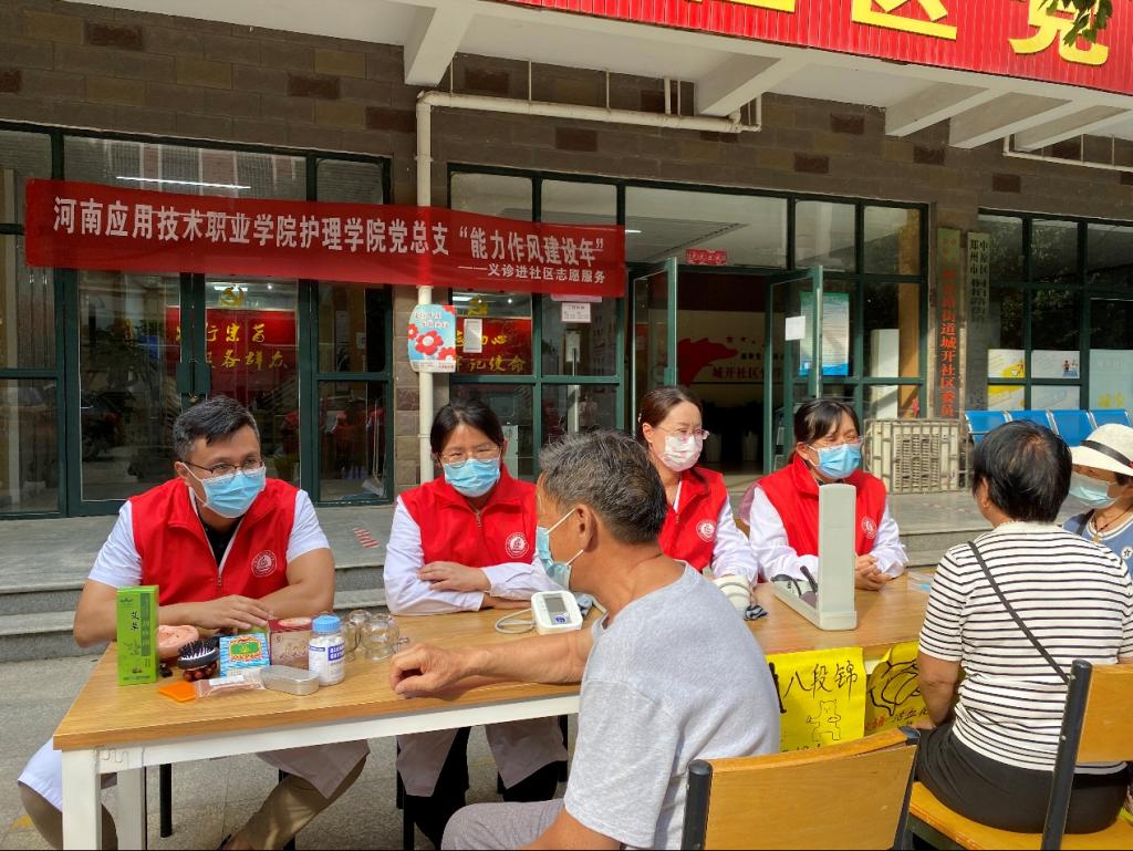 为扎实开展“能力作风建设年”活动,密切联系群众,2022年9月20日下午,护理学院党总支组织教工党员及学生党员到郑州市中原区城开社区,举办“能力作风建设年—义诊服务进社区”主题党日志愿服务活动。