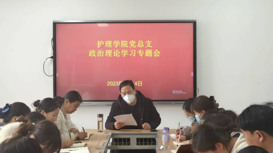 根据学校党委宣传部安排,2023年2月14日,护理学院党总支组织全体教职工在A515党员活动室召开政治理论学习专题会,会议由护理学院党总支书记杨明杰主持。