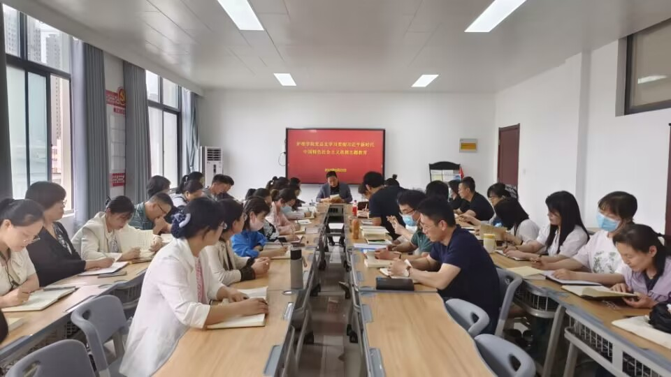 根据学校党委宣传部安排,2023年5月23日,护理学院党总支组织全体教职工在A515党员活动室召开政治理论学习专题会,开展学习贯彻习近平新时代中国特色社会主义思想主题教育,会议由护理学院党总支书记杨明杰主持。