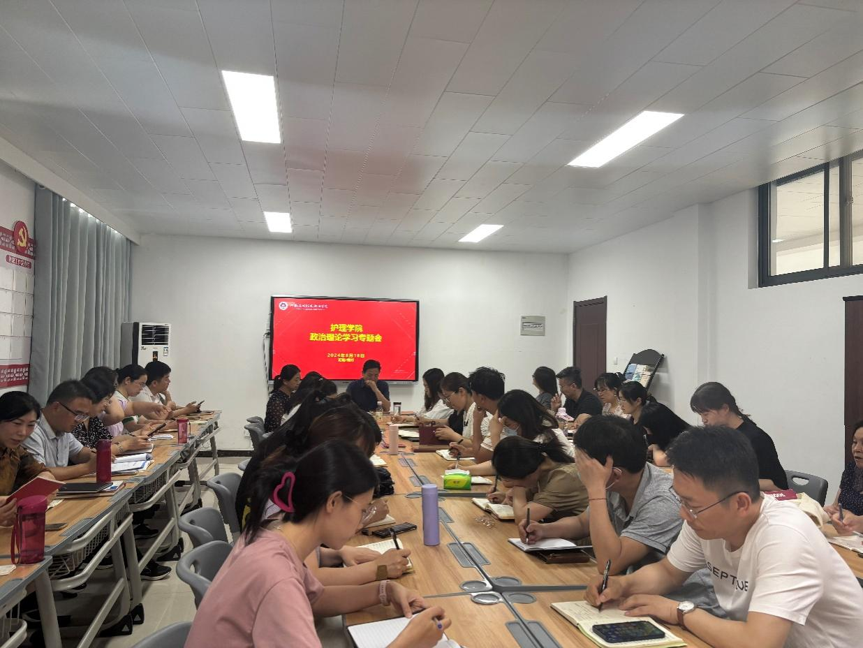 为深入学习贯彻习近平总书记重要讲话和重要指示精神,提升我院教职工的政治理论素养,6月18日,护理学院在A515党员活动室组织全体教职工开展政治理论学习,会议由护理学院党总支书记杨明杰主持,全体教职工参加。