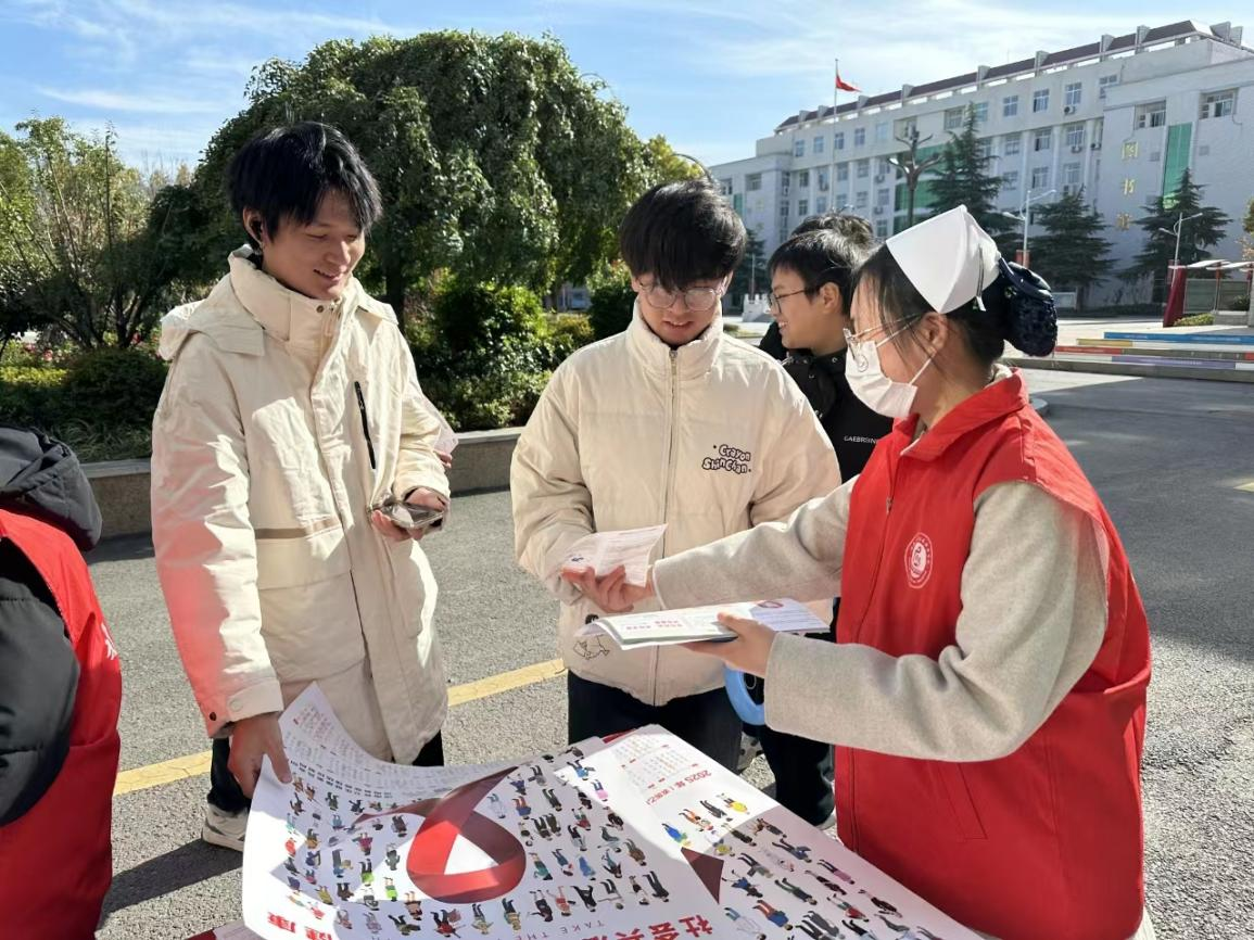 活动现场,护理党员党总支组织党员教师及入党积极分子充分发挥专业优势,引导大家科学认知艾滋病,消除常见误解,避免高危行为,将防艾知识融入日常点滴。他们化身“防艾使者”,分散在校园图书馆、北广场、食堂等要道,向过往老师和同学们发放艾滋病宣传手册、宣传挂历、宣传袋等,普及艾滋病健康教育预防知识,增强广大师生对艾滋病的正确认知。