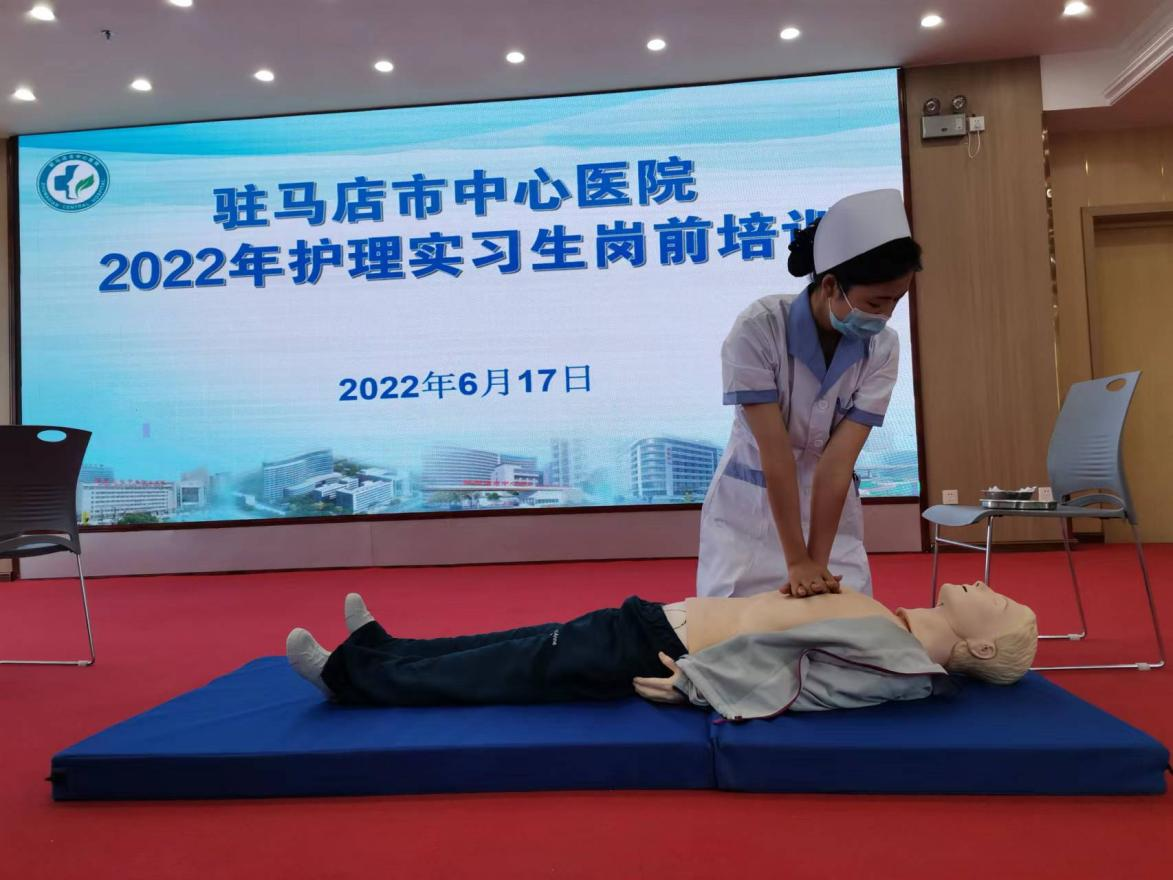 milan米兰体育官网护理学院护理2016班冯新茹同学实习期间表现优异,在驻马店市中心医院2022年护理实习生岗前培训中,在教师示范操作心肺复苏术后,冯新茹同学积极举手参与现场演示,沉着冷静、娴熟干练的操作技术受到医院护理部主任及其他在场护士们的一致好评。在演示结束后,冯新茹同学与其他两名医院在职护士作为代表,参与当地电视台关于医院宣传视频的拍摄,演示心肺复苏急救技术。