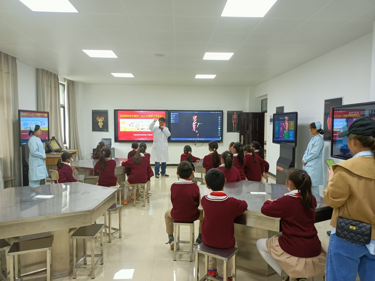 5月27日,护理学院组织中原区一五三小学百余名师生到我院科普教育基地——人体解剖虚拟仿真实训中心参观学习。护理学院老师和学生志愿者参加了此次科普教育活动的讲解和接待工作。