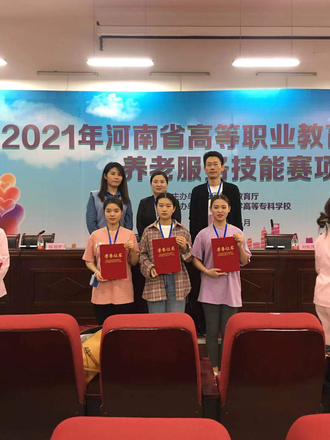 4月28—30日,2021年河南省高等职业教育技能大赛养老服务技能大赛在漯河举行,milan米兰体育官网在本次大赛中荣获佳绩,护理学院2019级护理专业、老年保健与管理专业学生齐慧珠、张文慧、卢钰莹分别获二等奖3项;柳超、李悦临、宋文颖三位老师获优秀指导教师奖。