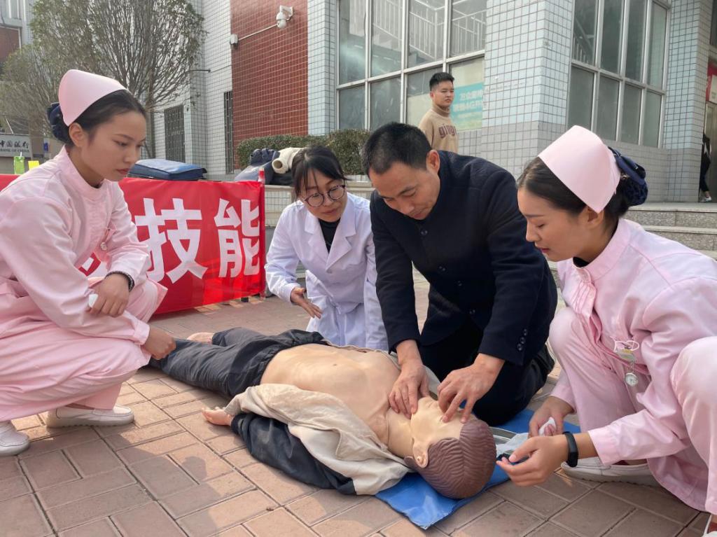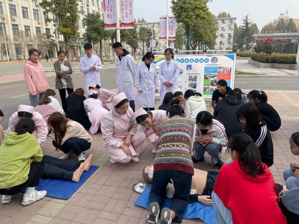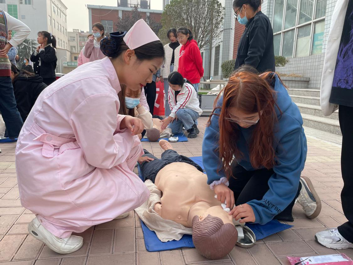 11月13日,护理学院临床内科教研室依据《健康中国行动(2019—2030年)》规划纲要指示精神,结合贯彻落实《关于做好2020年职业教育活动周》的文件要求,在校园内开展了“院前急救技能”培训的活动,在活动中广大师生积极参与,亲身体验,受益匪浅。