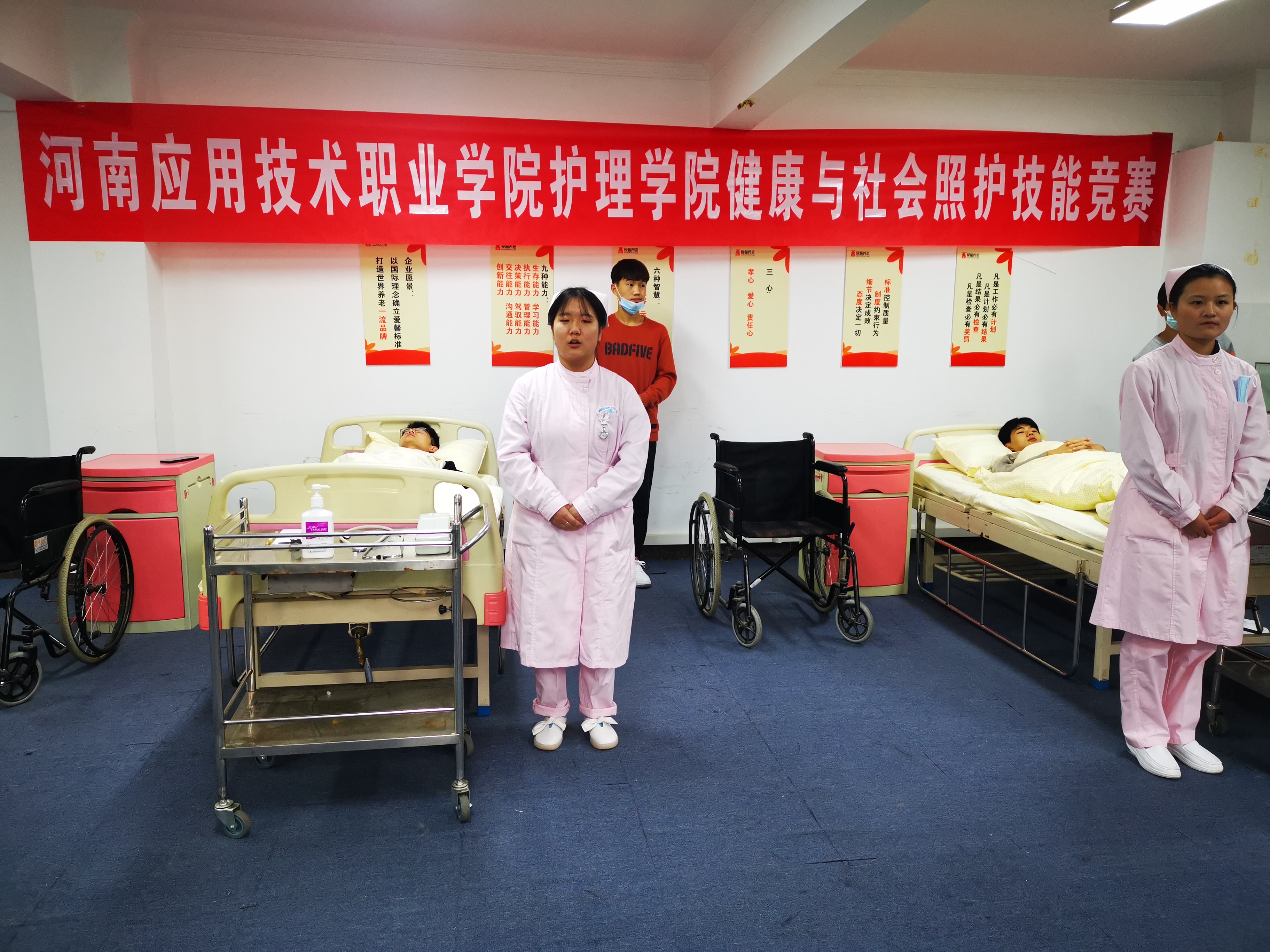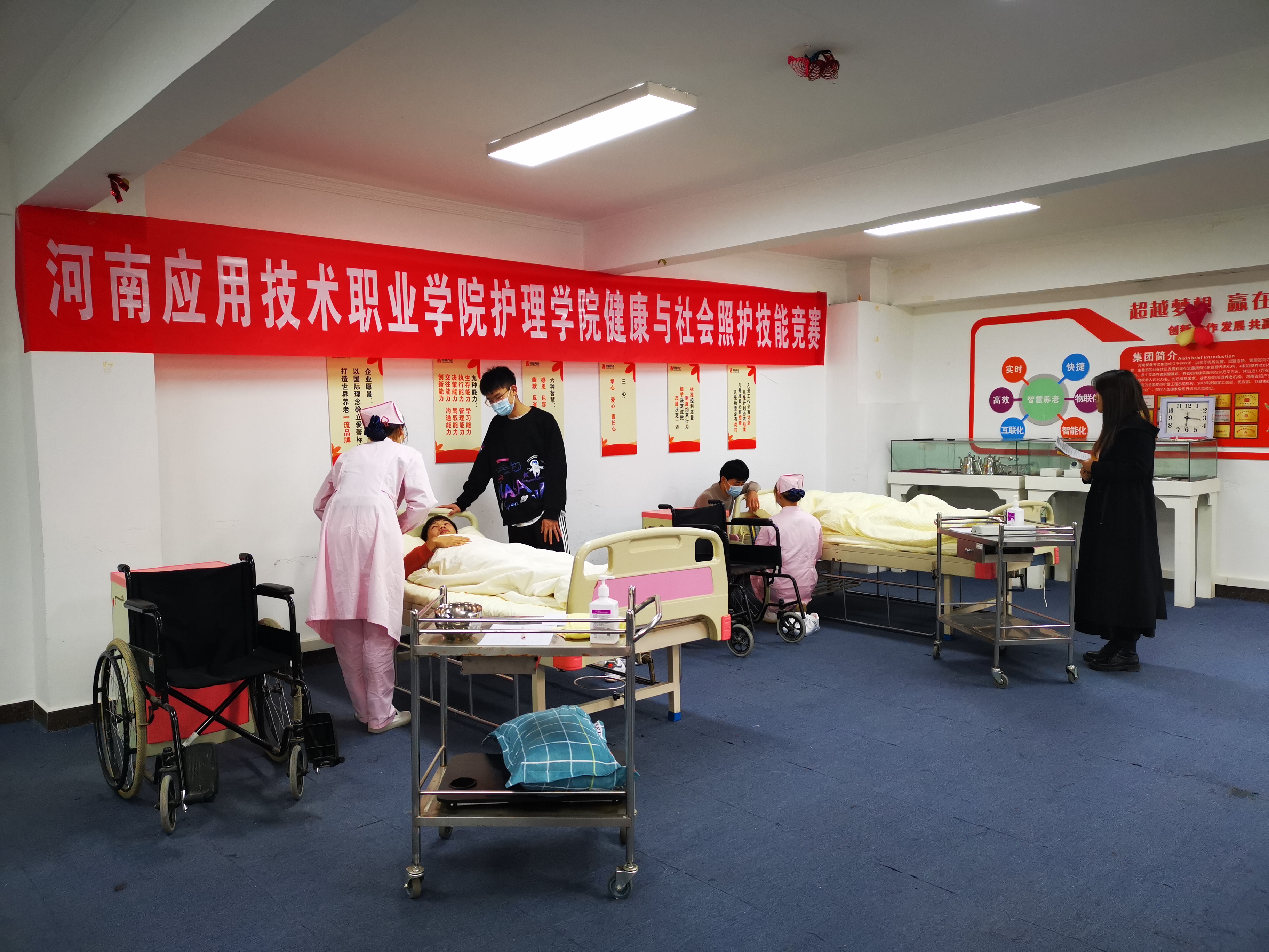 2020年11月27日上午10点,milan米兰体育官网首届健康与社会照护竞赛在河南爱馨养老集团展馆2楼大智慧教室顺利举行。护理学院老年保健与管理专业32名学生参加了此次比赛。本次技能比赛以世界技能大赛健康与社会照护赛项为引领,“以赛促教、以赛促改、赛教融合、赛训融合”,对接国家、行业等标准,以培养选拔国家技能大赛选手和促进职业教育高质量发展为目标,比赛设定医院、长期照护中心、日间照护中心以及家庭四个竞赛模块,不但能够提升参赛者健康与社会照护需要的知识和技能,同时提升其组织管理能力、沟通和人际交往能力、解决问题等能力等。