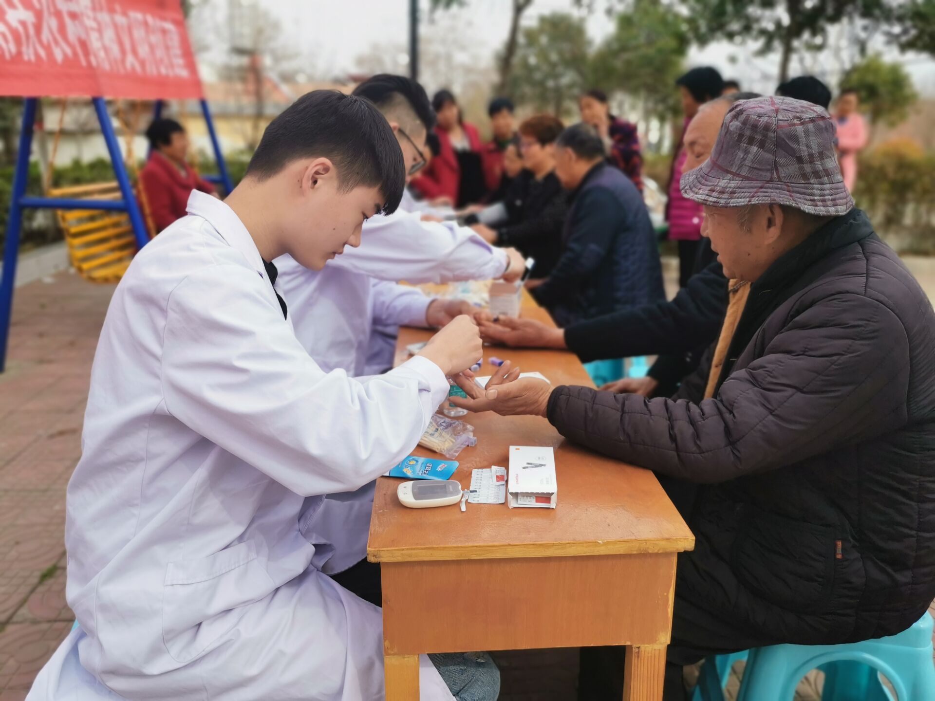 此次义诊活动向当地居民提供免费量血压、测血糖等服务,前来测量的居民在摊位前排起了长队。活动现场,志愿者还向居民普及健康知识,耐心细致地讲解慢病护理、健康保健知识,指导老年人饮食和日常活动。每一位志愿者都本着对患者负责的态度,秉持“爱心、耐心、细心、责任心”为居民服务。志愿者团队在这温暖的春日里开展义诊宣教活动,用实际行动唤起居民对健康的保护意识,建立自我健康行为。尤其是预防优于治疗,希望更多人重视并参与进来,通过共同努力,推动全民关注身体健康,提升全民身体健康素养。