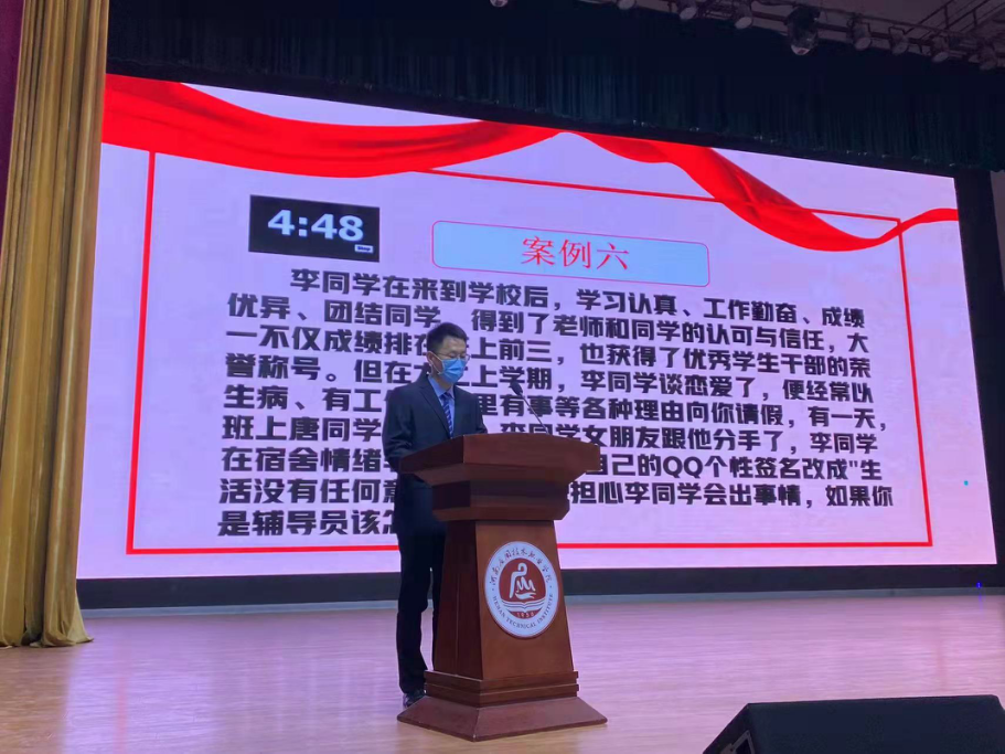 比赛中,辅导员们针对疫情防控、心理健康、网络贷款、人际关系、情感等问题进行深入剖析,层层递进,逐步升华,展现了敏锐的思维方式、优秀的分析能力及有效的处理问题能力,思教结合,给人启迪。