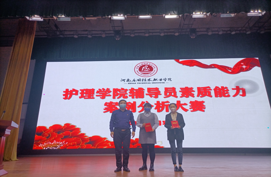 此次比赛评委由发展与质量管理处处长朱明悦、护理学院党总支书记杨明杰、护理学院院长王风云等领导老师担任。共有10名护理学院辅导员参加比赛。