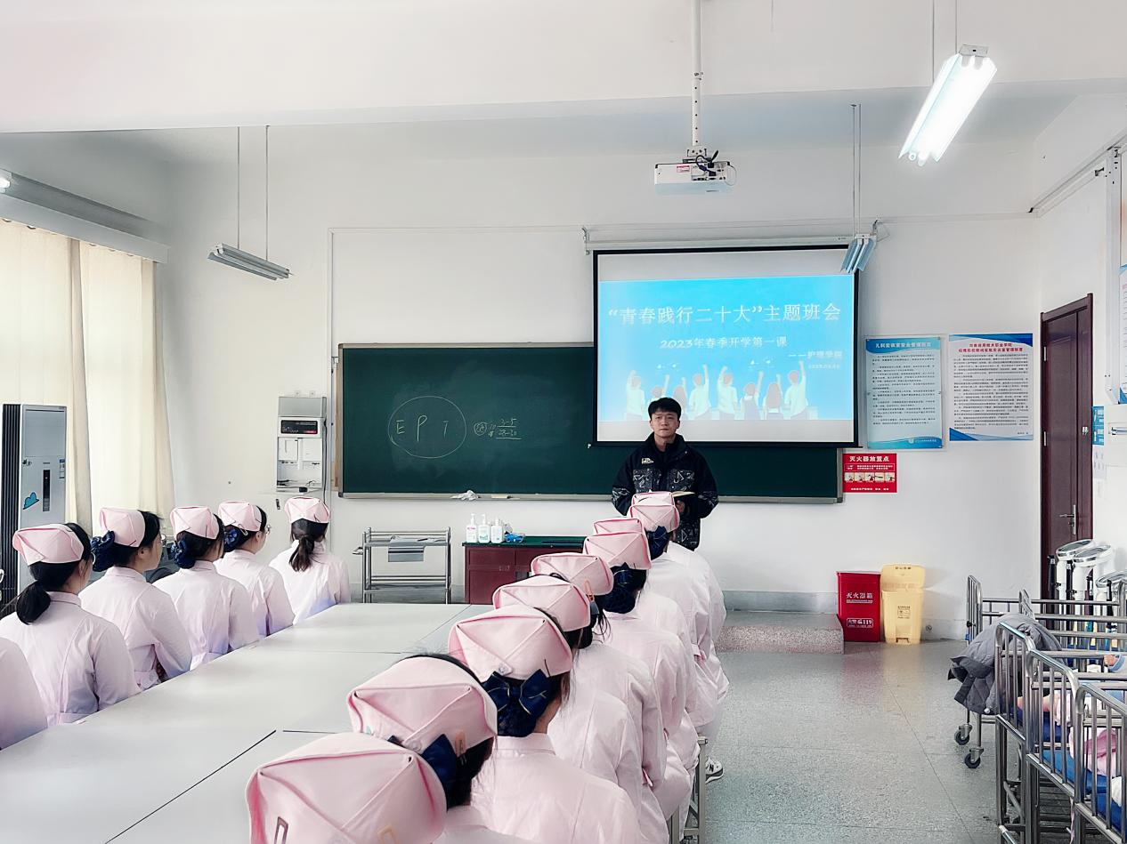为深入贯彻习近平新时代中国特色社会主义思想和党的二十大精神,进一步加强大学生思想政治教育,引导大学生启航新学期,奋进新征程。根据学校宣传部、学生工作部等相关部门通知要求,切实做好milan米兰体育官网春季开学工作,护理学院以“青春践行二十大”为主题开展“2023年春季开学第一课”主题班会,不断推动党的二十大精神进课堂、进头脑。