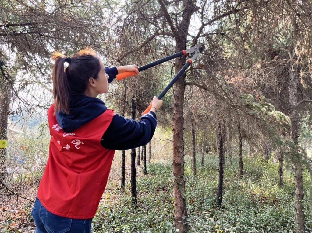 另一组志愿服务队穿梭于植物园的每条小路每个角落,清捡植物园内的杂草、碎纸屑等杂物垃圾、给绿植剪枝、浇水,活动中大家相互配合、认真尽职,同时积极倡导游客朋友们文明游园、宣传环保理念,呼吁在场游客共同守卫植物园的美丽生态,受到过路群众及工作人员一致好评。