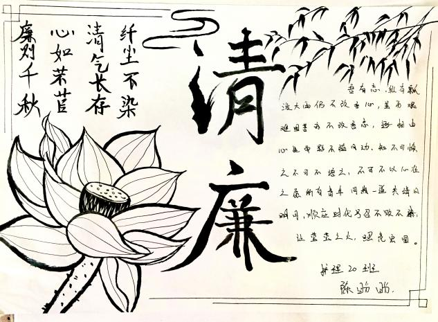 清廉校园扬正气,水至无声见初心。为落实立德树人根本任务,培养诚信立人、遵纪守法、廉洁奉公的良好道德风尚,扣好人生廉洁第一粒扣子,营造“崇德倡廉、风清气正”的校园氛围,进一步增强全体师生廉洁自律意识,护理学院党总支开展以“弘扬廉文化,清风盈护理”为主题的廉洁文化书画作品网络展。