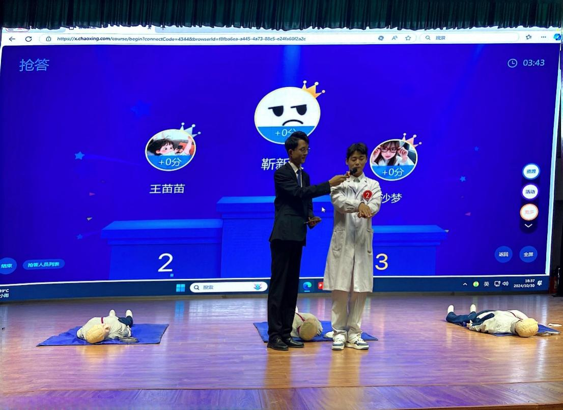 随着比赛的正式开始,各组选手依次登台展示,他们从容不迫地完成了从判断环境及病人意识、呼救和急救准备到完整的心肺复苏操作等一系列步骤。整个比赛过程紧张而有序,选手们展现出了扎实的专业技能和冷静应对突发事件的能力,赢得了台下观众的阵阵掌声。