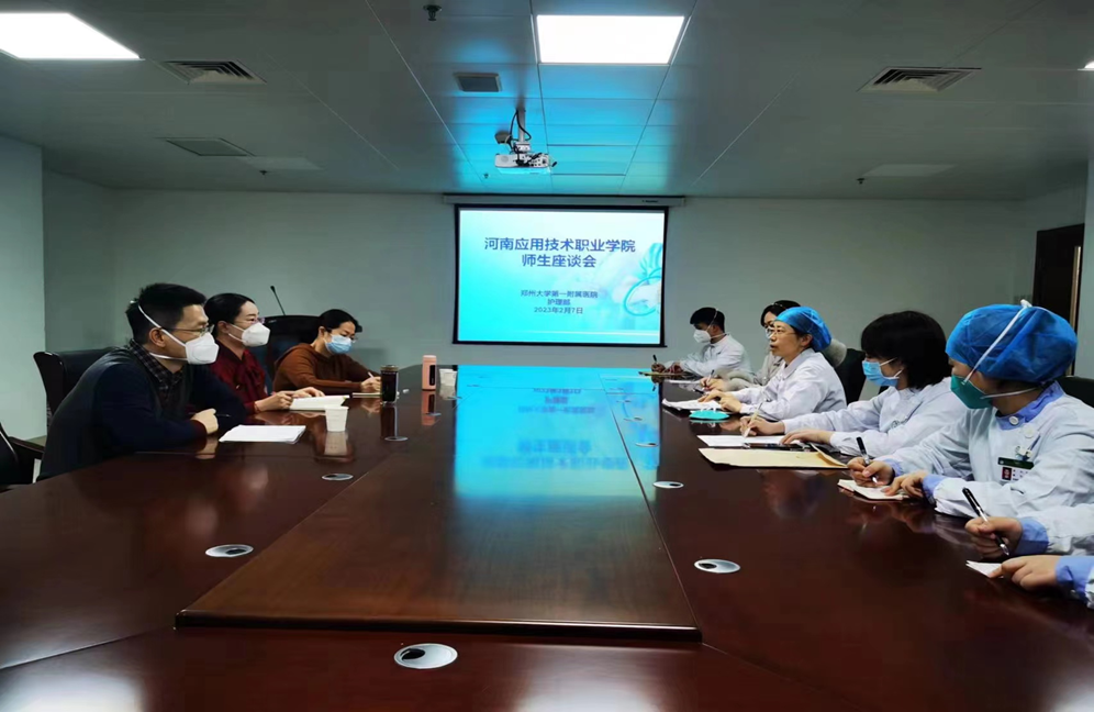 为更好了解milan米兰体育官网护理岗位实习情况,拓宽就业渠道,挖掘校企合作新潜力,护理学院于2023年2月28日上午到郑州大学第一附属医院河医院区参加milan米兰体育官网实习生线下座谈会,本次会议由护理学院温晓丽副院长、刘常鹏老师、柳超老师与郑大一附院总代教徐宏蕊老师、朱雪雅老师、韩郁壬老师、胡晓静老师参加,milan米兰体育官网郑大一附院全体实习生参加。